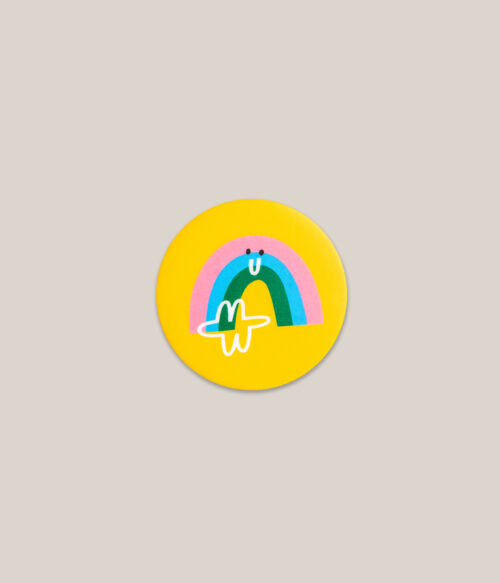 Žltý odznak s dúhou vznikol v sérii odznakov ku dňu Zeme. Ozdoba pre malých i veľkých.